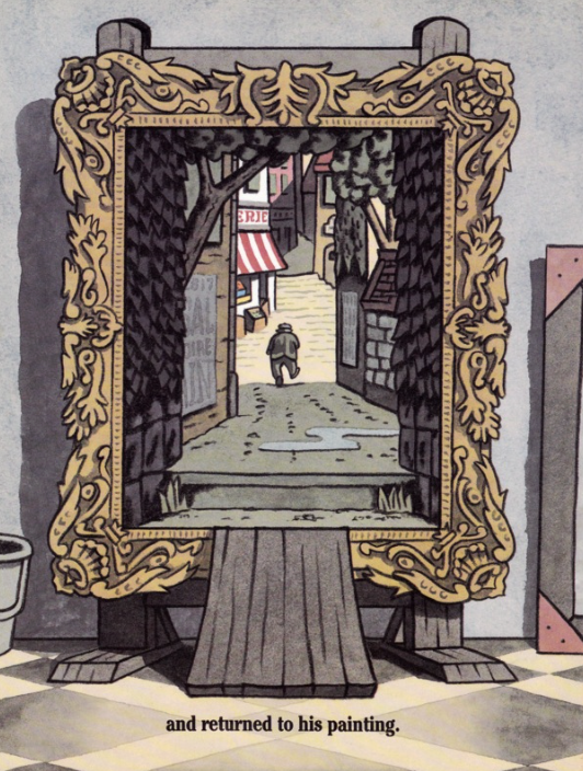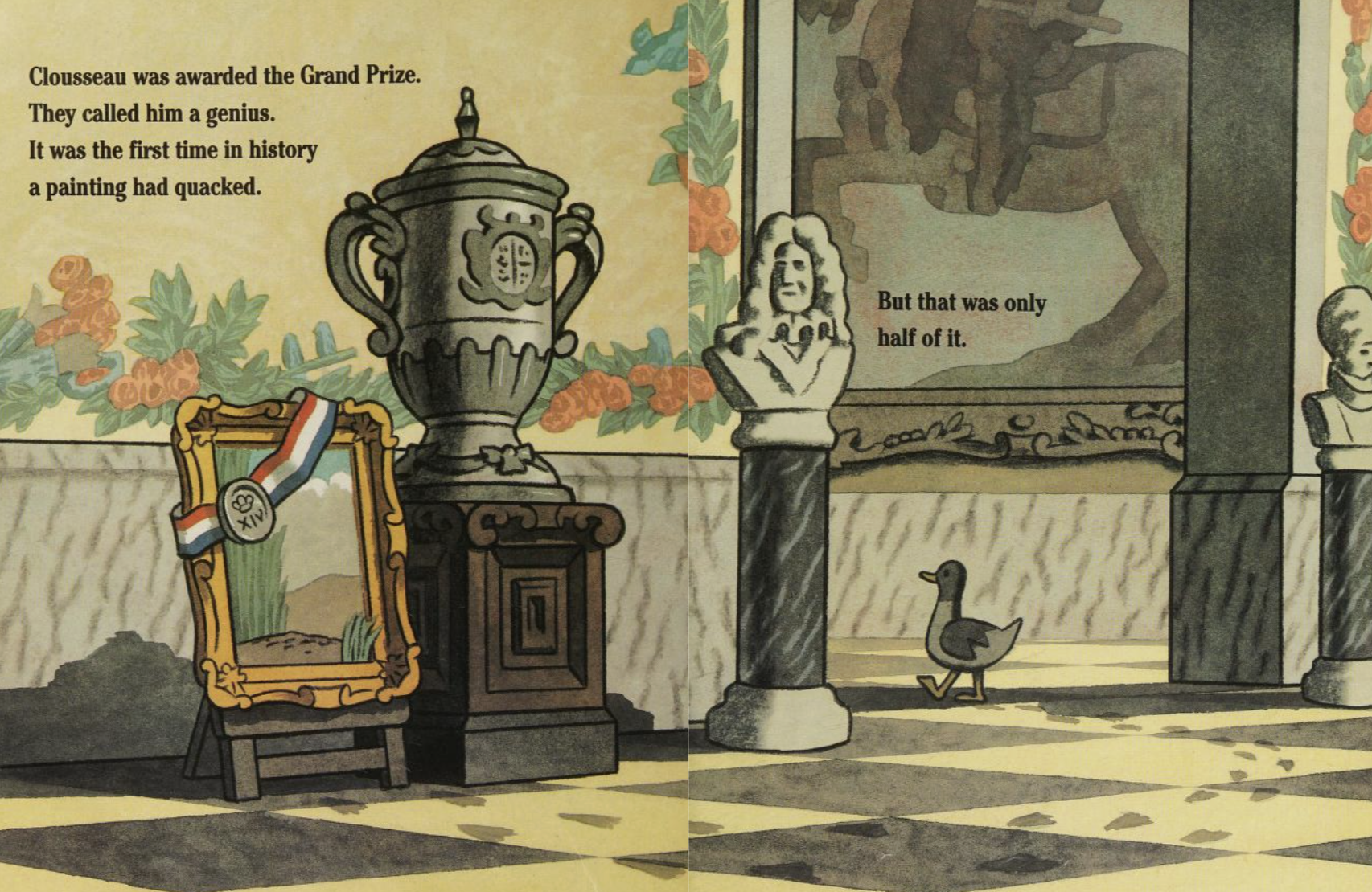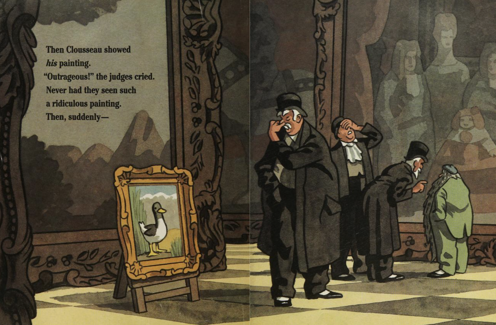 This is particularly on my mind at the present moment, in that I am preparing a submission to the Proceedings that will look closely at the “Birdish” entanglements of a winsome children’s story published in 1988 by the author/illustrator Jon Agee. I am referring to The Incredible Painting of Felix Clousseau. The book tells the tale of the titular bohemian (and under-appreciated) artist who eventually becomes the toast of Paris for his canvases, which are endowed with seemingly magical powers — in that they can “come to life.” This is initially celebrated as a wonder, but eventually leads (sorcerer’s-apprentice-style) to calamity.